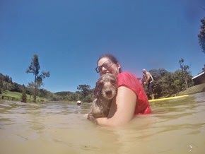 Em uma trilha com dificuldade intermediária, entre a Mata Atlântica, com bastante sombra e algumas subidas e descidas, cães e donos se divertiram bastante. Mas o auge da aventura foi mesmo quando chegamos à parte final: o pântano!! Ai sim, a farra foi completa. E a gente se suja mesmo, viu? Com vontade, com gana, como se não houvesse amanhã ou como se os “amanhãs” não nos proporcionassem mais aventuras. Sabe porque?! Pra depois ficar coladinhos nos nossos donos, dentro do lago, com a desculpa de que eles precisam entrar para nos lavarem... eheheh. Normalmente funciona, olha só as imagens!